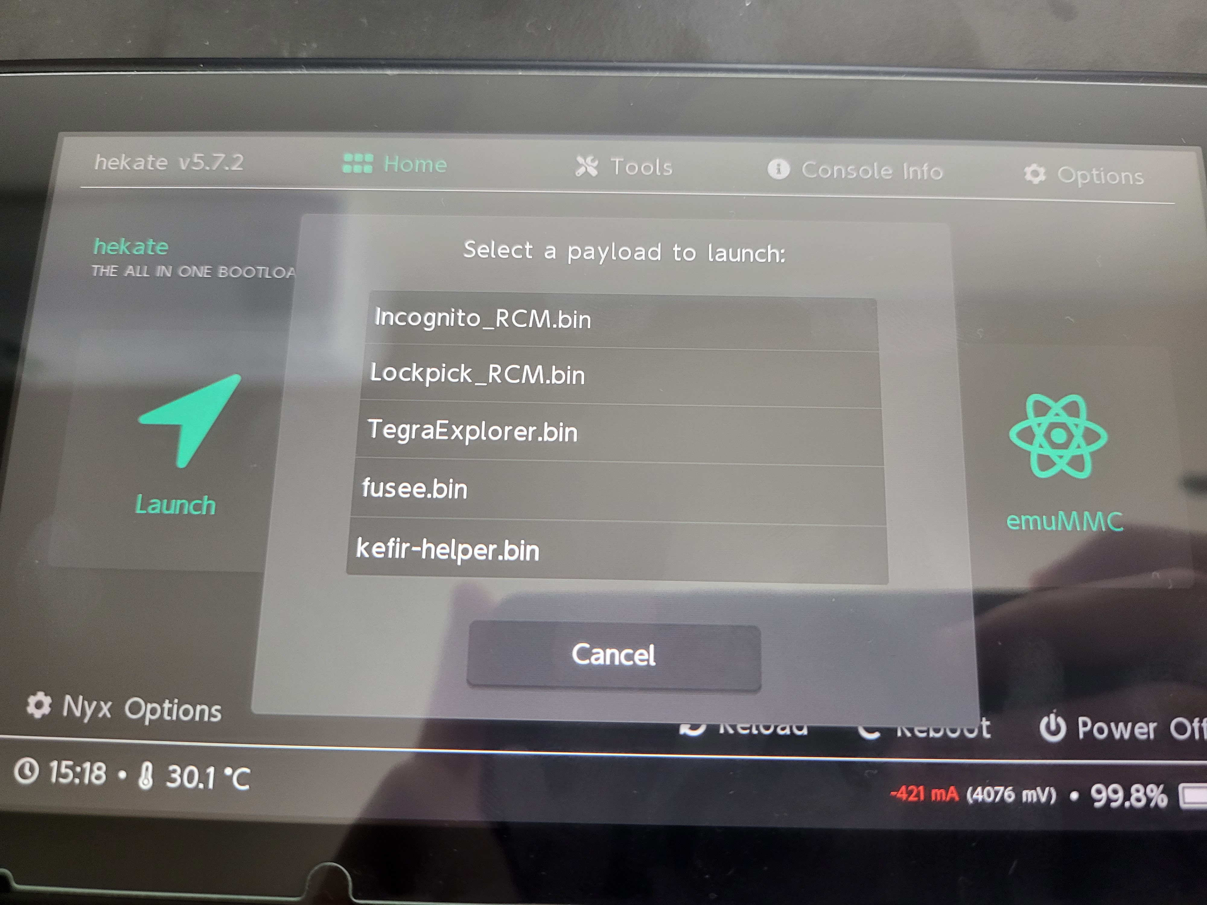 폴더 버튼을 눌러 아까 복사해주었던 payload.bin 파일을 지정해주고, Inject payload를 눌러줍니다. 그러면 자동으로 KEFIR에 진입됩니다.