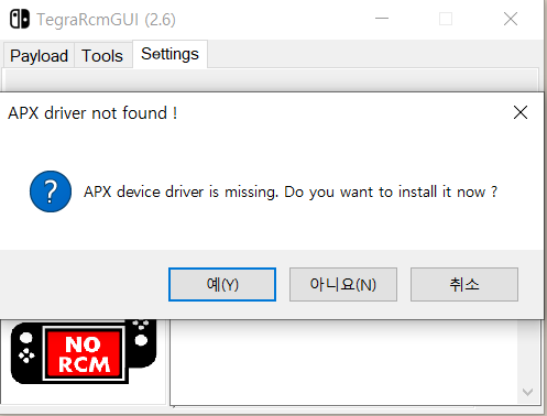 TegraRcmGUI에 진입, 필요한 usb 드라이버를 설치해주었습니다.