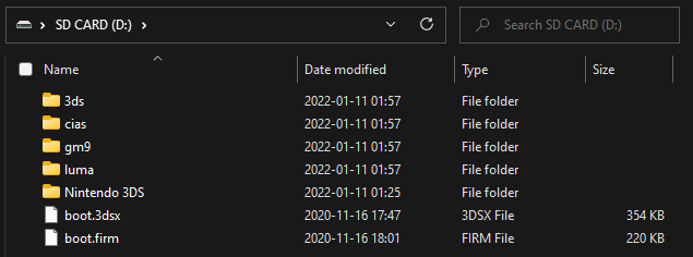 2. SD카드의 최상단에 '3ds'라는 폴더가 없다면 하나 만들어줍니다.